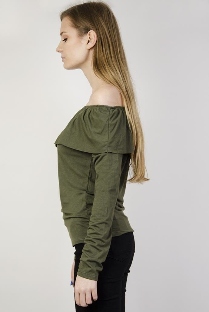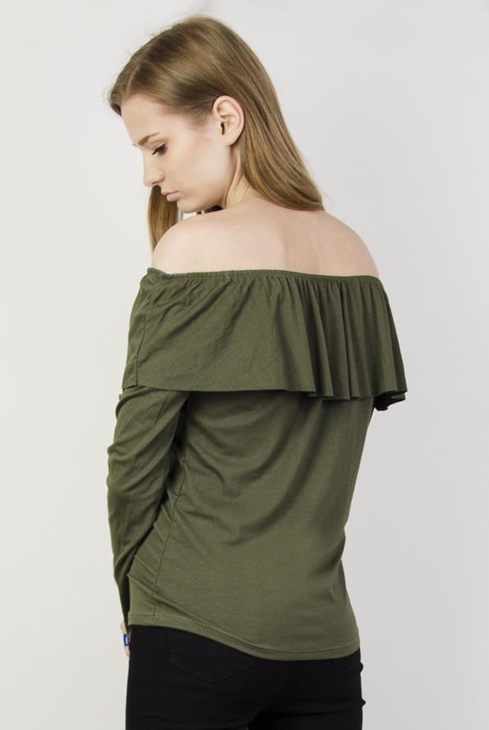 Zielona bluzka z hiszpańskim dekoltem, z długim rękawem