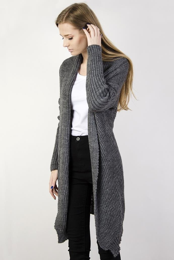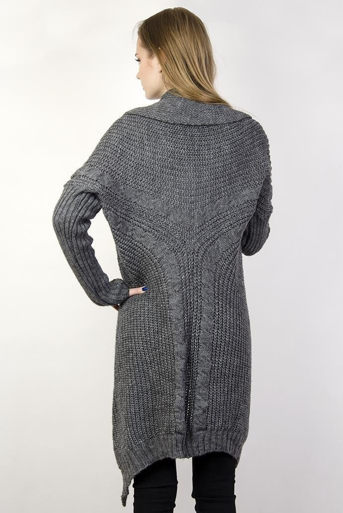 Ciemnoszary sweter kardigan z wywijanym kołnierzem