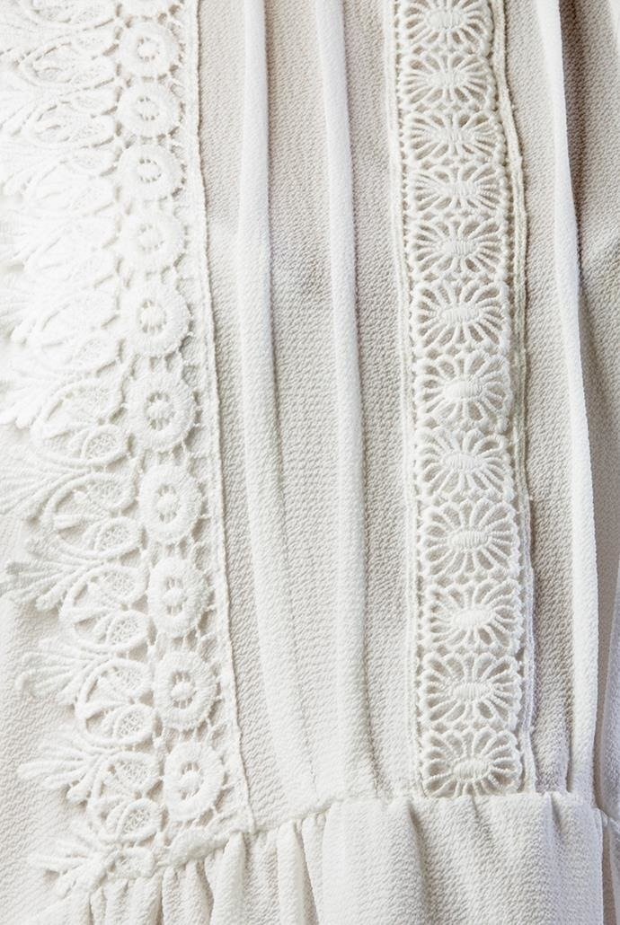 Biała bluzka szyfonowa z ażurowymi zdobieniami, posiada gumkę przy rękawach.