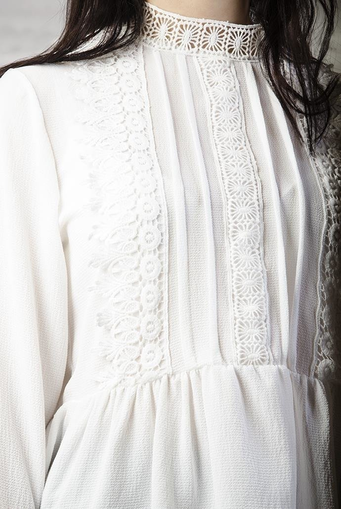 Biała bluzka szyfonowa z ażurowymi zdobieniami