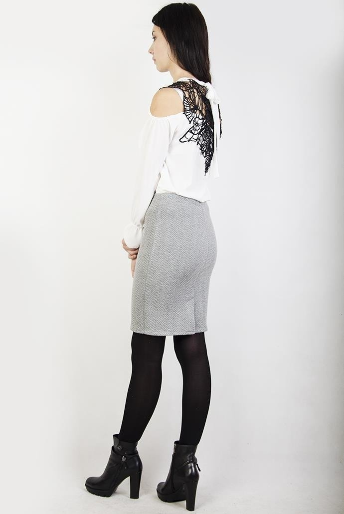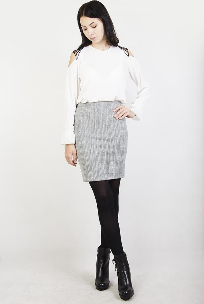 Ołówkowa szara spódnica w jodełkę