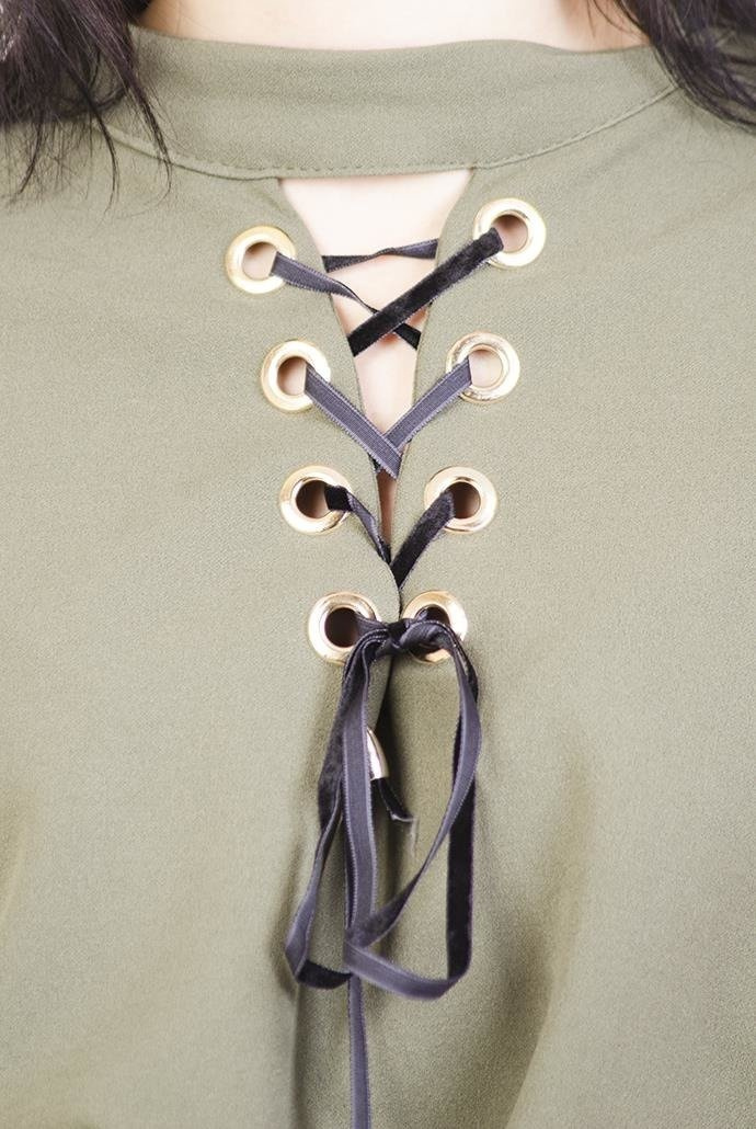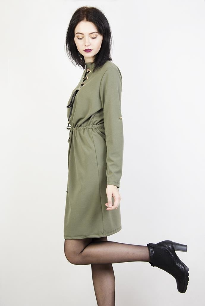 Zielona sukienka wiązana w dekolcie