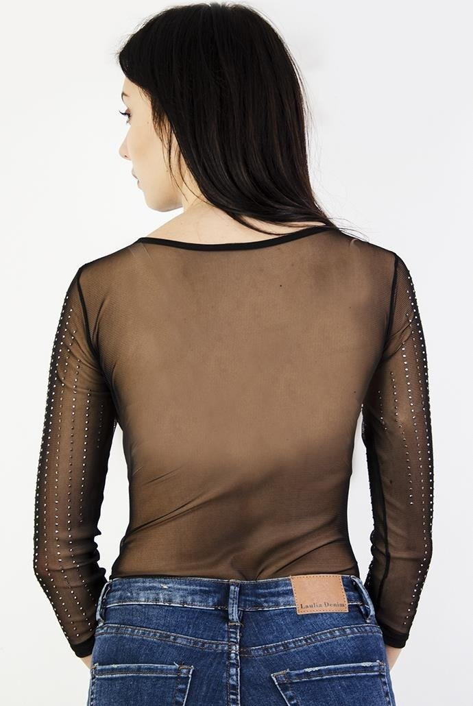 Czarne, siatkowane body z cyrkoniami.