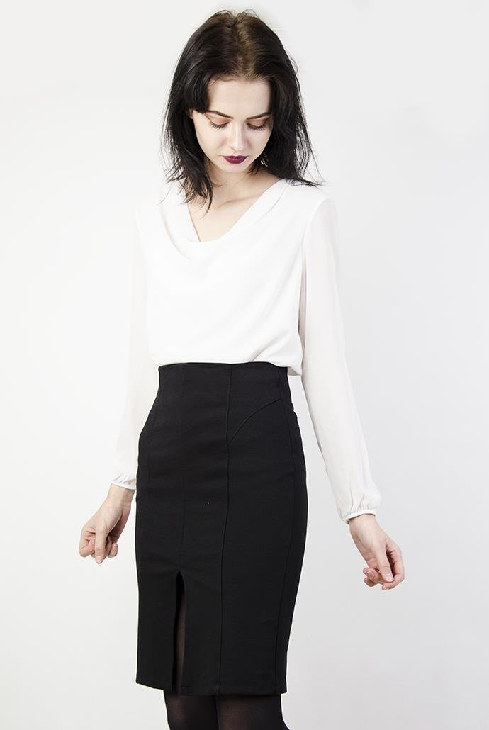 Czarna spódniczka ołówkowa z przeszyciami i wycięciem