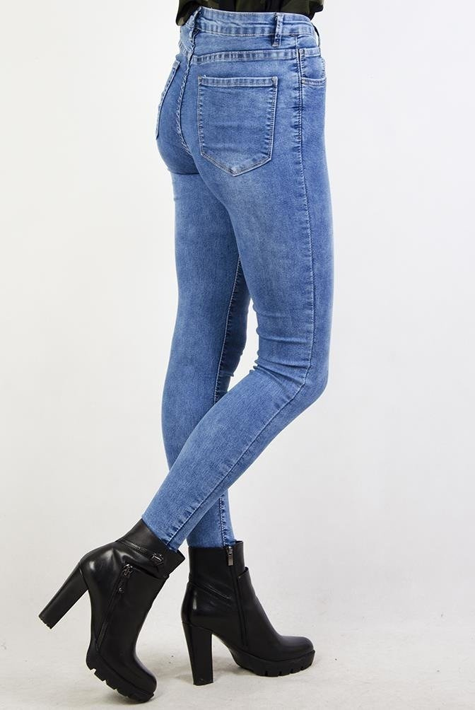 Jasne spodnie jeansowe przylegające, posiadają średni stan.