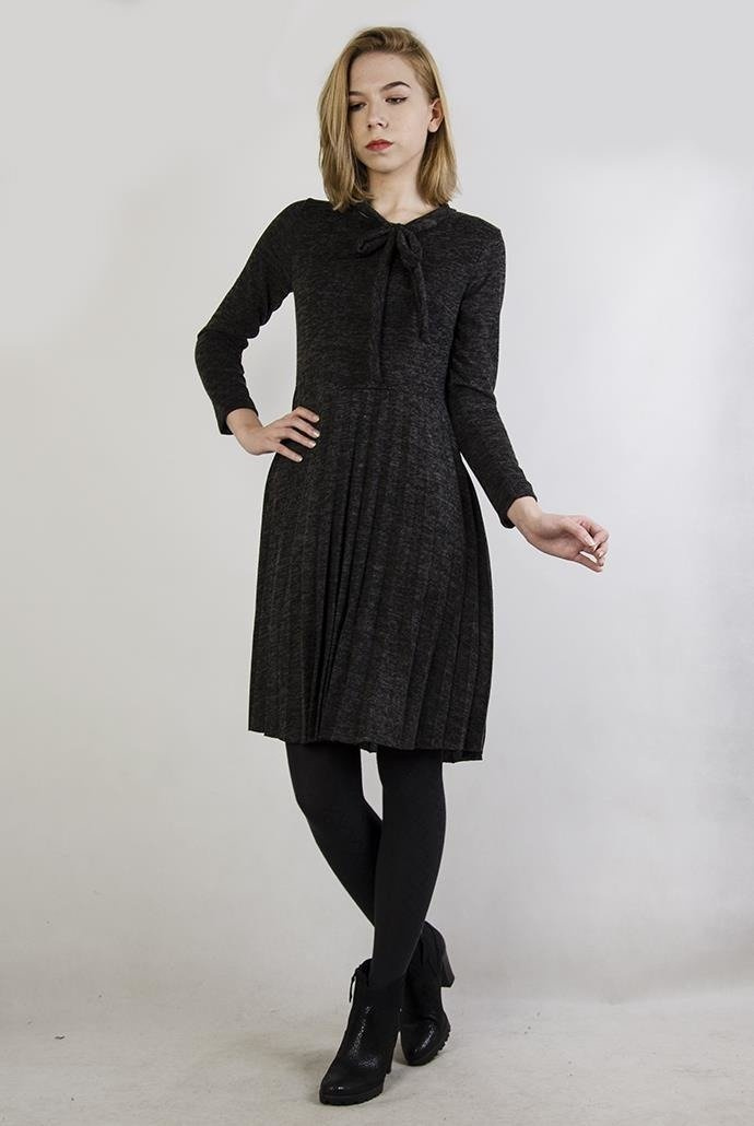 Ciemnoszara sukienka z wiązaną kokardą przy szyi