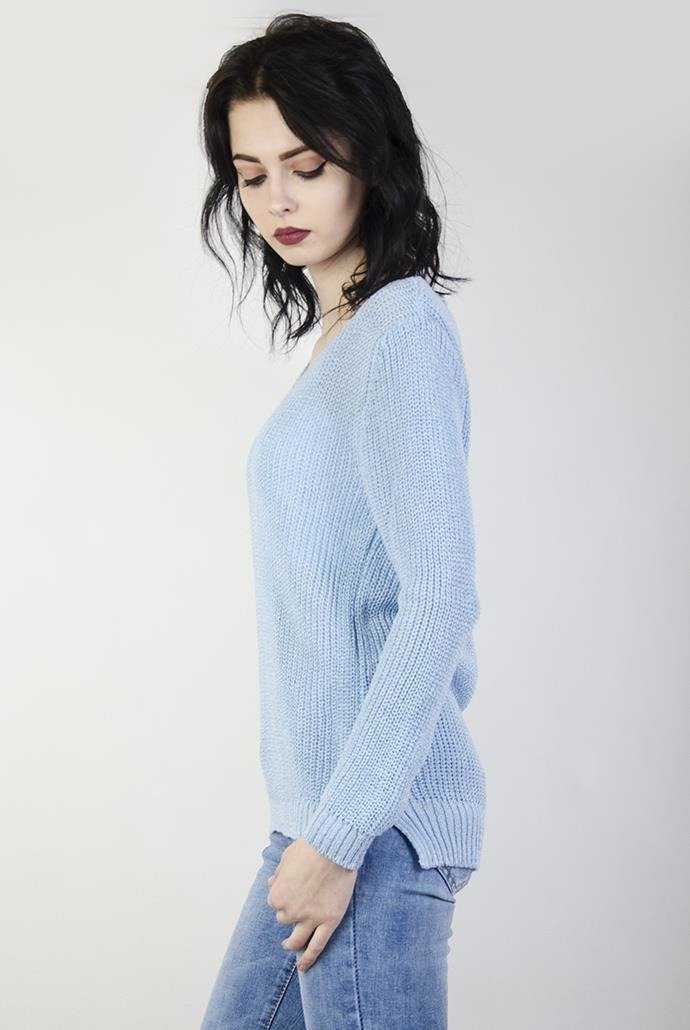 Jasnoniebieski sweterek z wycięciami z tyłu