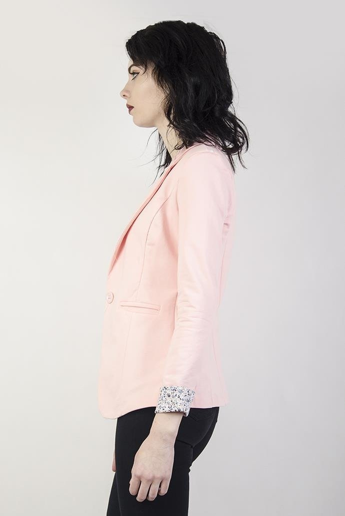 Jasnorożowa marynarka z kwiatowymi wstawkami