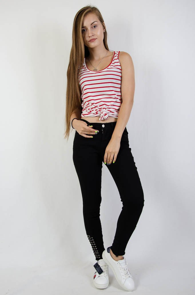 Czarne spodnie jeansowe z ćwiekami przy nogawce