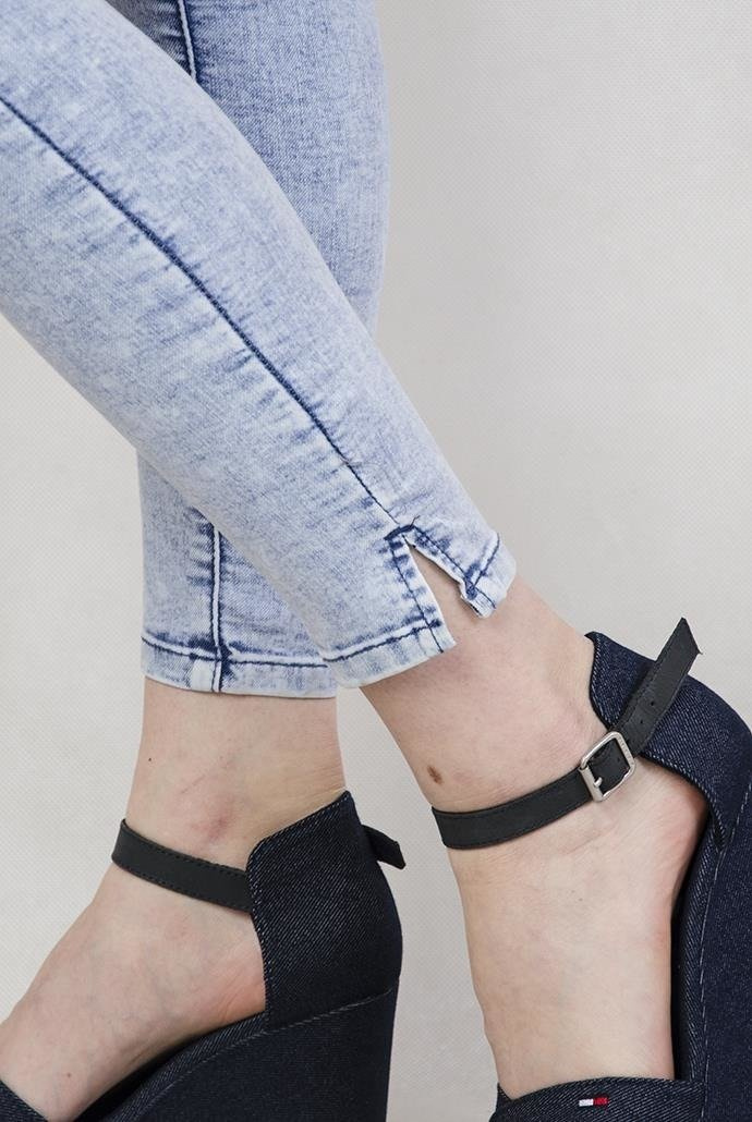Przylegające spodnie marmurkowe z wysokim stanem.