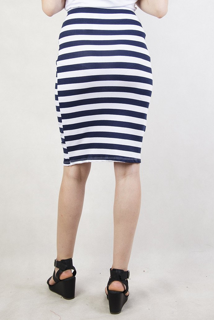 Biało-granatowa  dopasowana spódnica w szerokie paski.