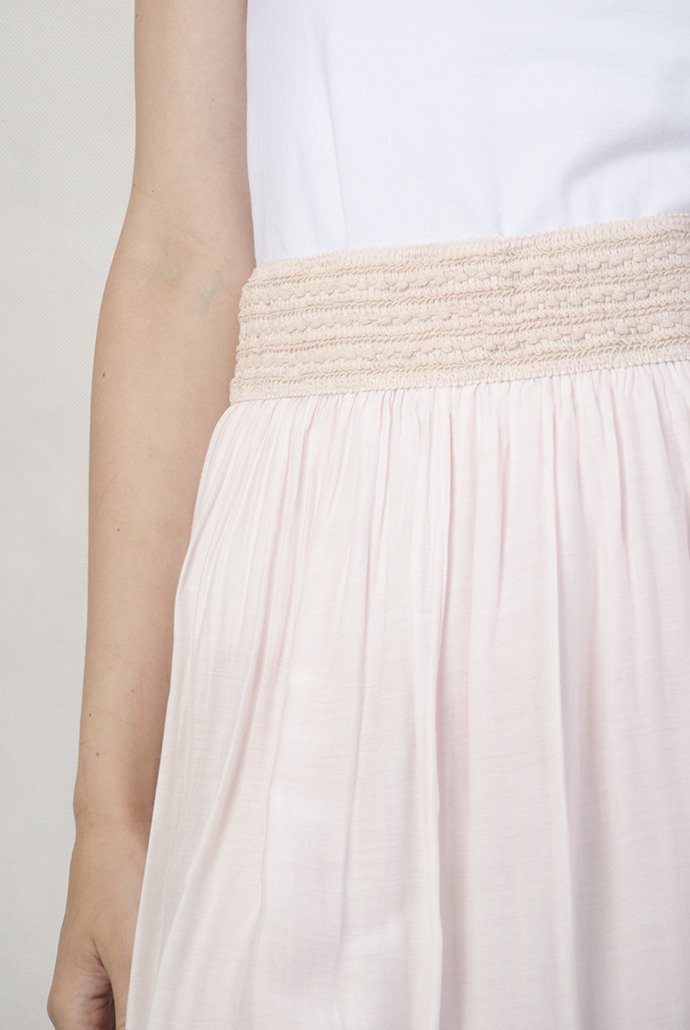 Różowa długa spódnica, z szerokim pasem.