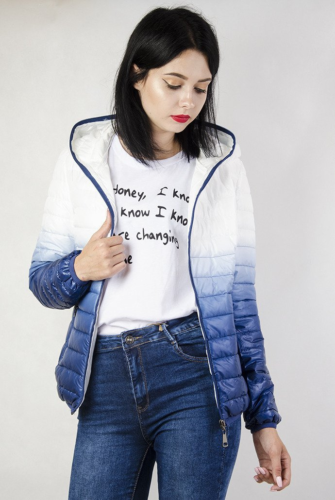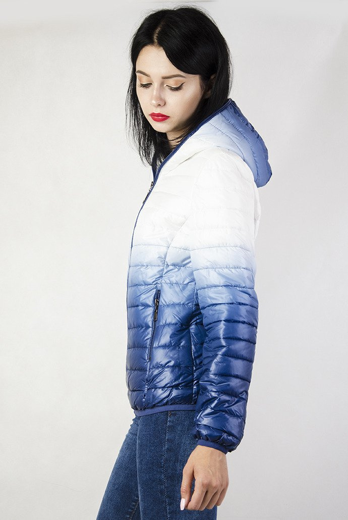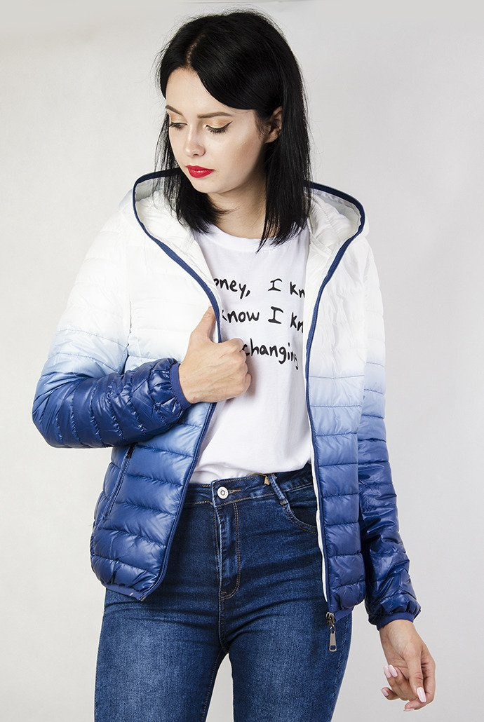 Kurtka pikowana w  cieniowanym kolorze biało-granatowym.