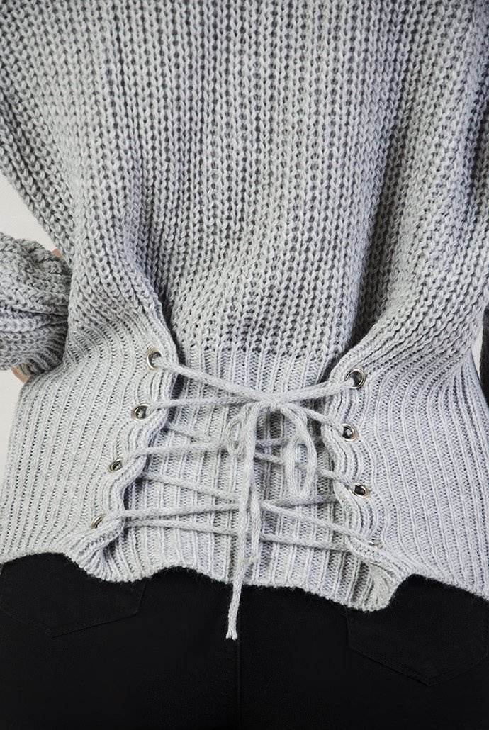 Szary sweterek z wiązaniem z tyłu
