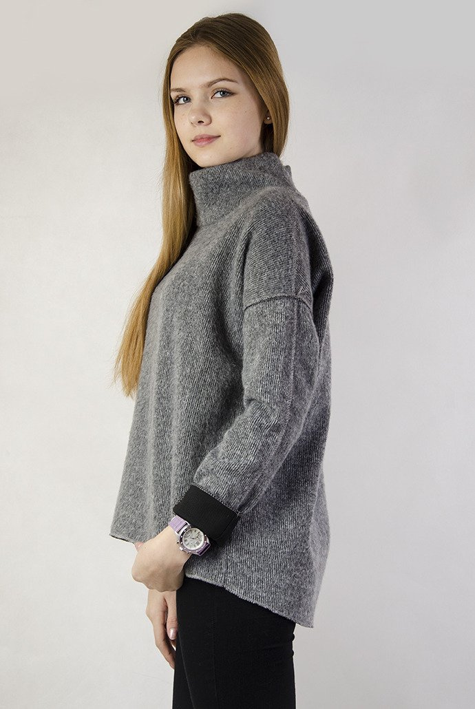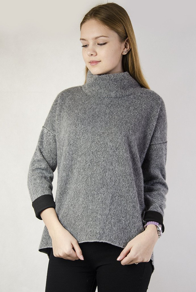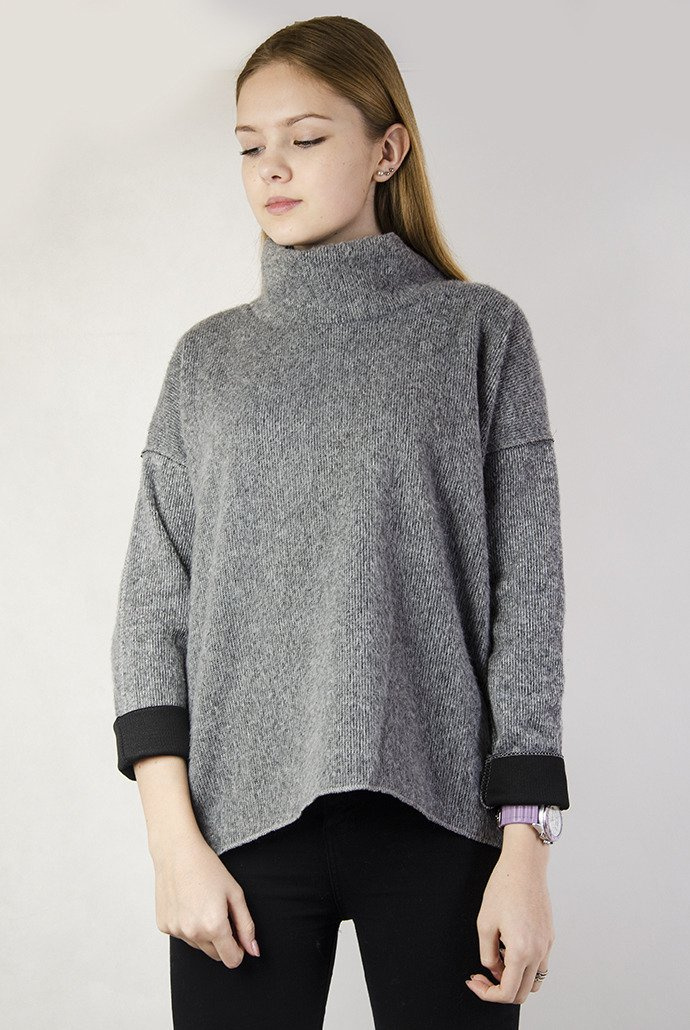 Szary asymetryczny golf (możliwość podwinięcia) przyjemny w dotyku.