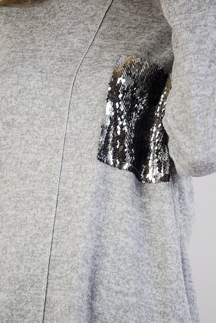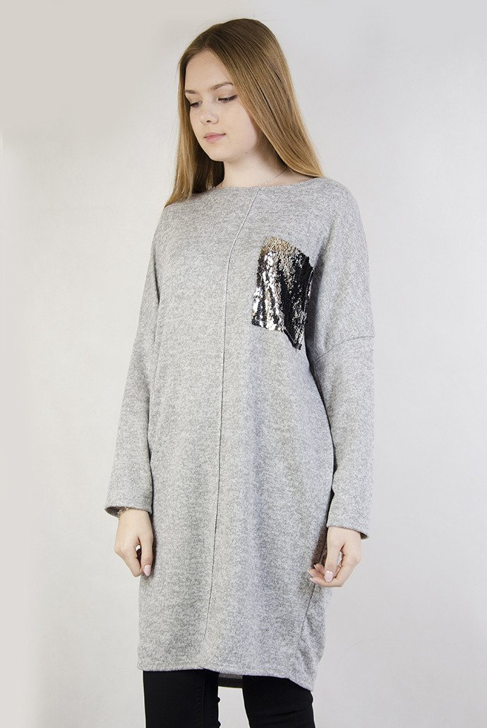 Jasnoszara tunika z cekinową kieszenią