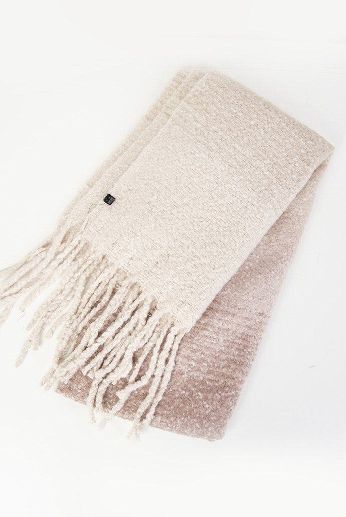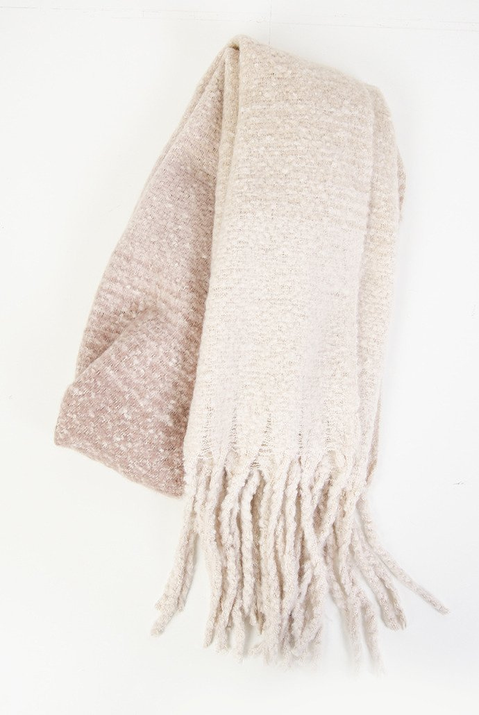 Długi cieniowany szal z frędzlami w odcieniach beżu i różu