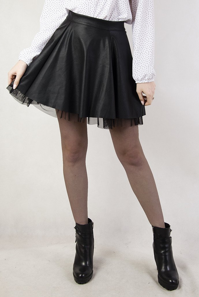 Skórkowa rozkloszowana spódnica w kolorze czarnym z dodatkiem tiulu