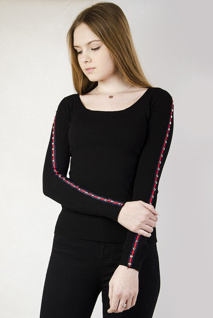 Czarna, przylegająca bluzka z ćwiekami u boku