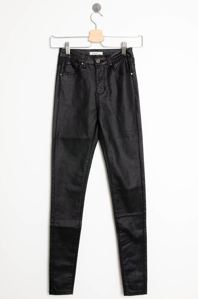 Czarne spodnie woskowane z wysokim stanem- imitacja skóry