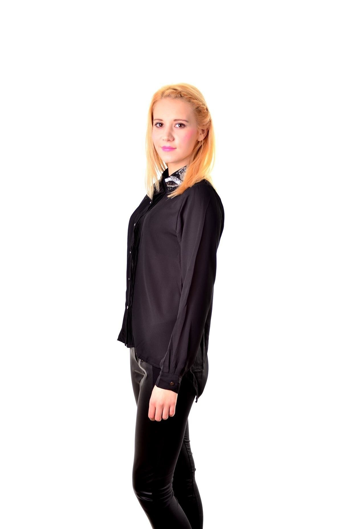 Luźna, elegancka koszula z bogato zdobionym kołnierzykiem, zapinana na ozdobne guziki, idealnie sprawdzi się w wielu stylizacjach, na co dzień, jak i na wieczór .