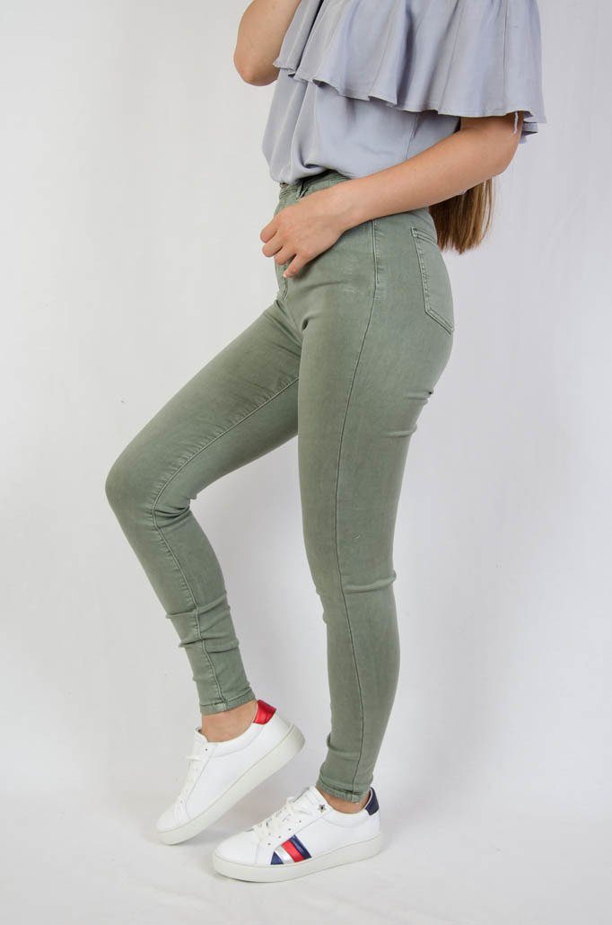 Jasno zielone dopasowane spodnie z wysokim stanem