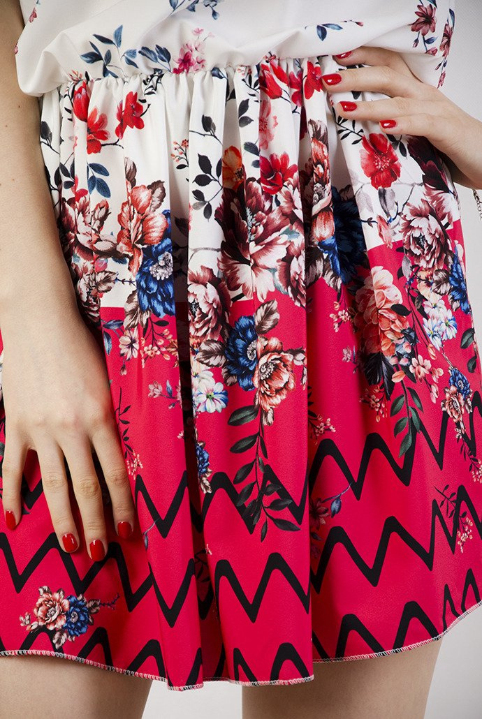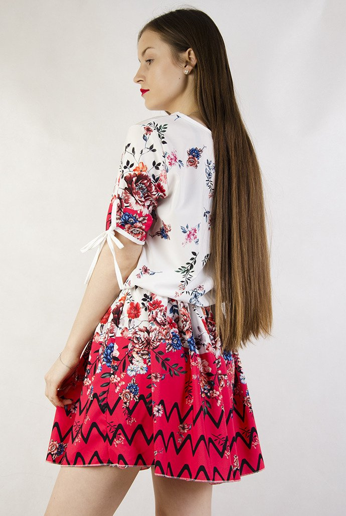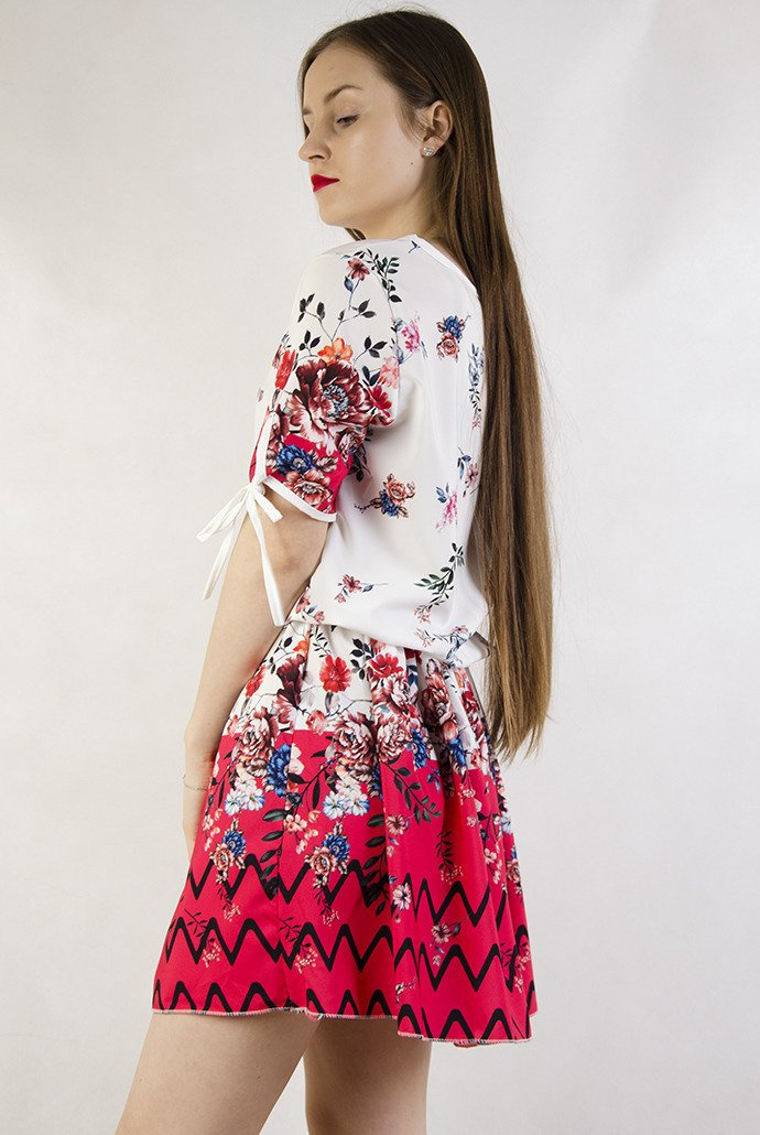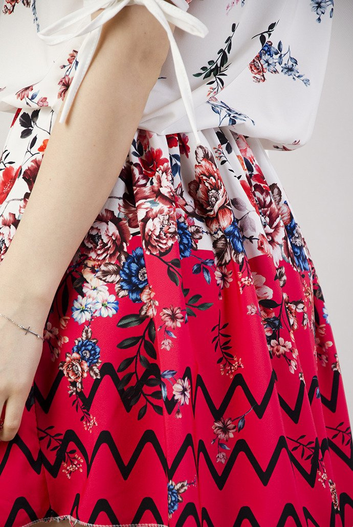 Biała sukienka z motywem kwiatowym z gumką w pasie