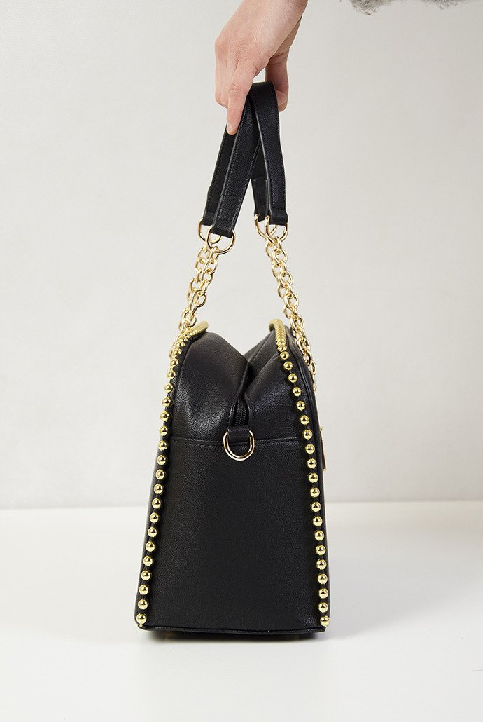 Czarna torebka typu kuferek ze złotymi ćwiekami