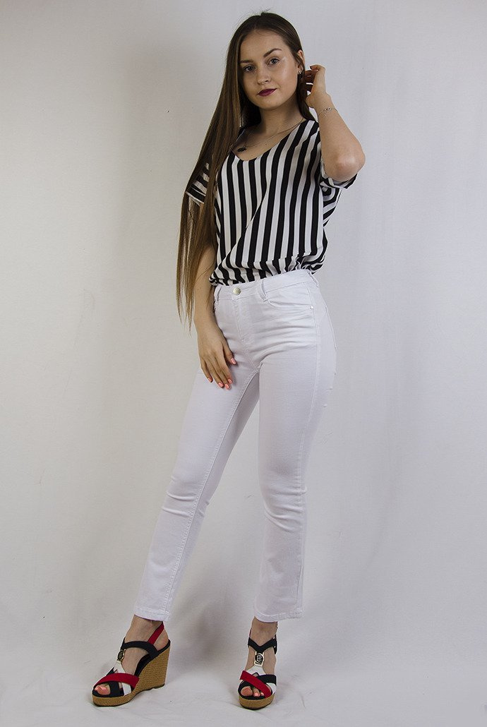 Białe spodnie typu"dzwony", z rozszerzaną nogawką