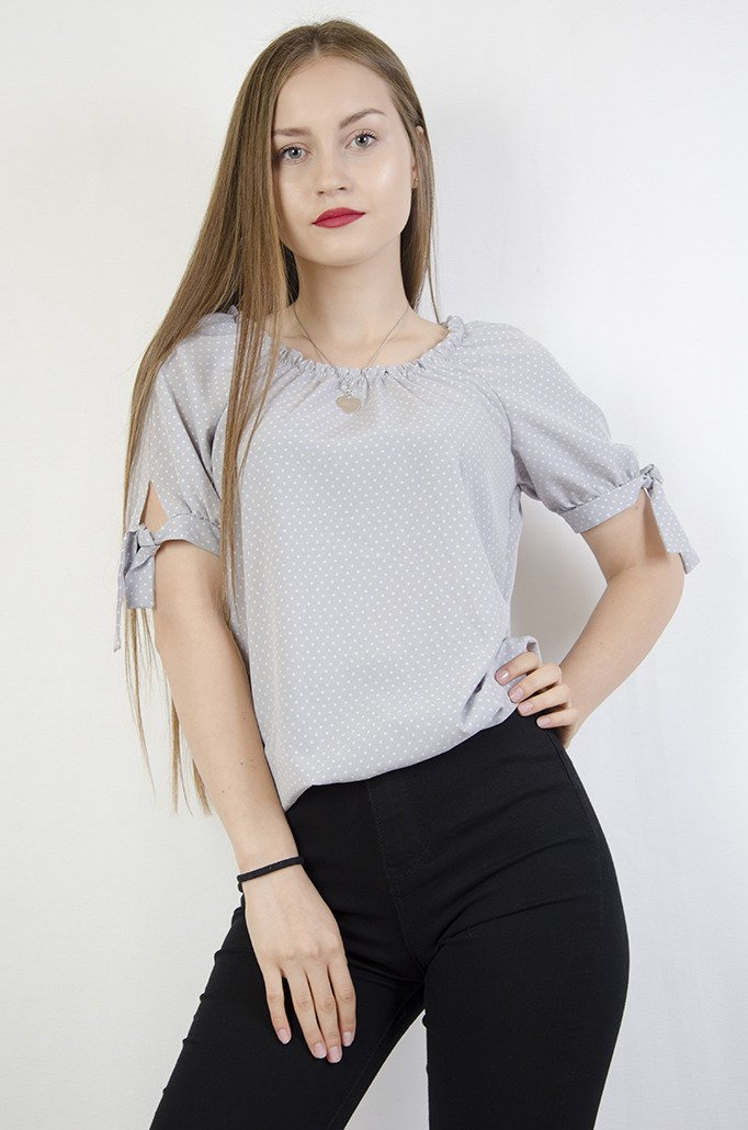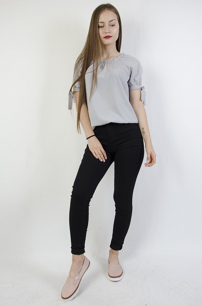 Szara bluzka w kropki z marszczeniem przy dekolcie