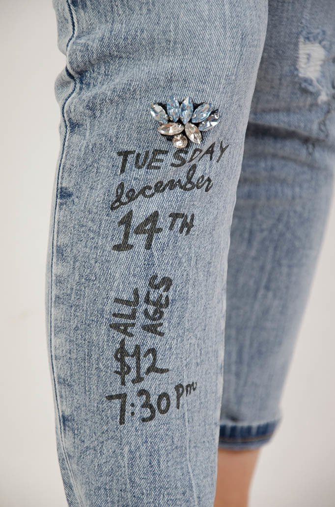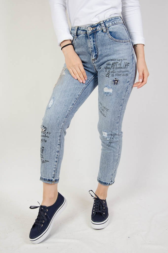 Spodnie jeansowe typu BOYFRIEND z napisami.