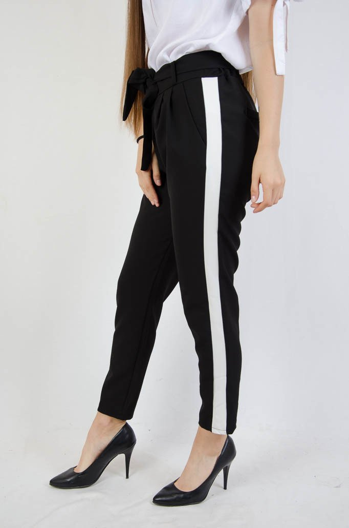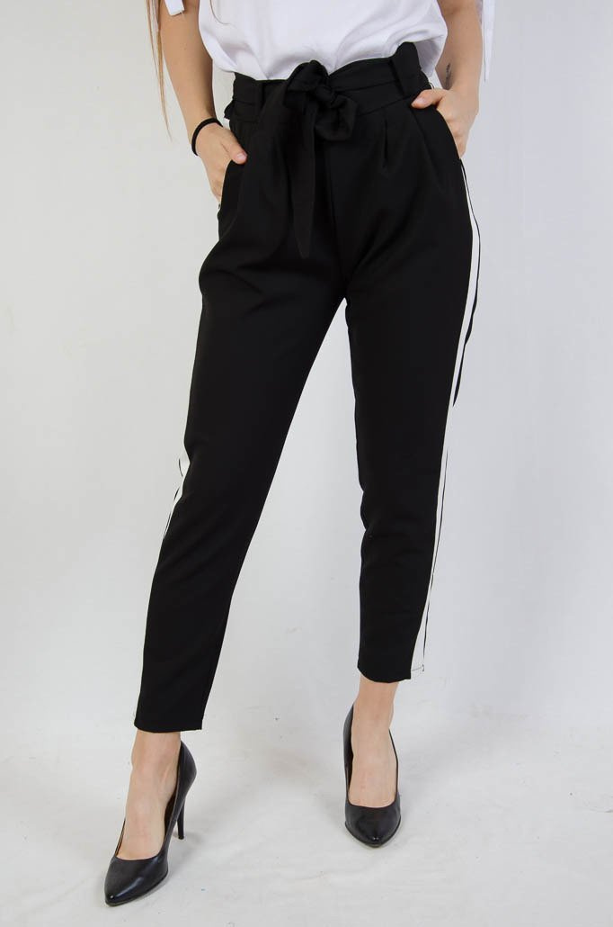 CZARNE SPODNIE WIĄZANE W PASIE Z LAMPASAMI