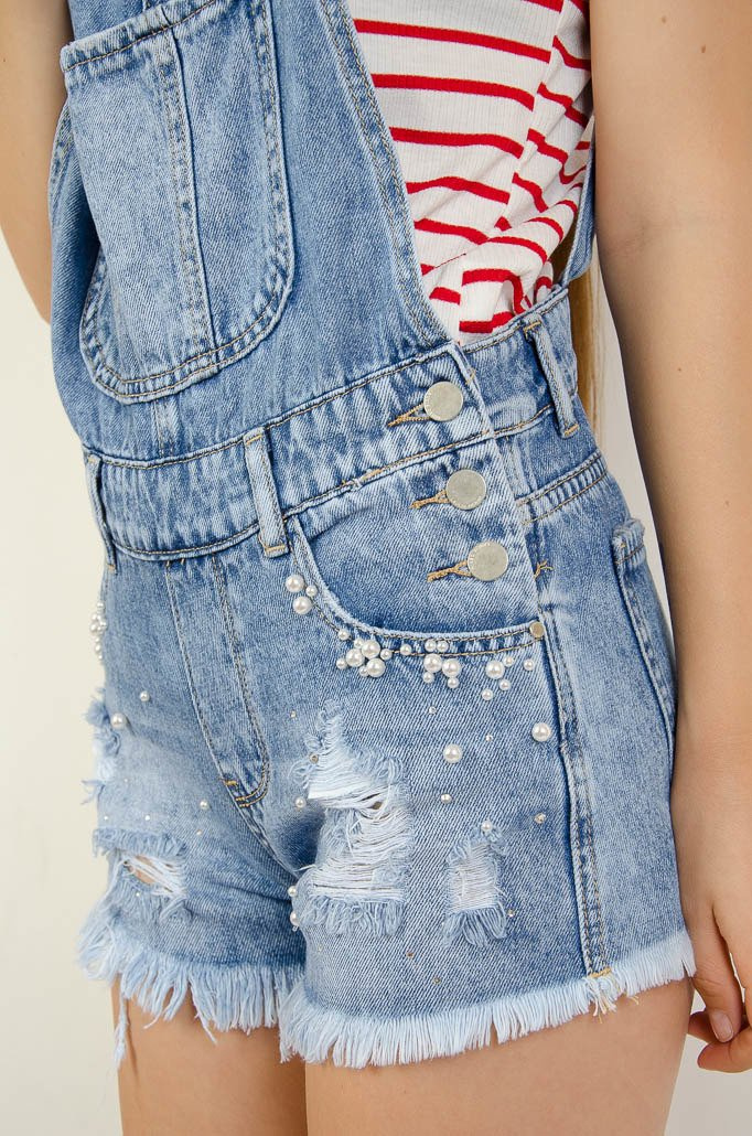 JEANSOWE OGRODNICZKI Z PEREŁKAMI
