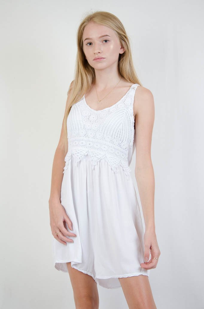 Biały kombinezon z ażurową górą oraz odkrytymi plecami
