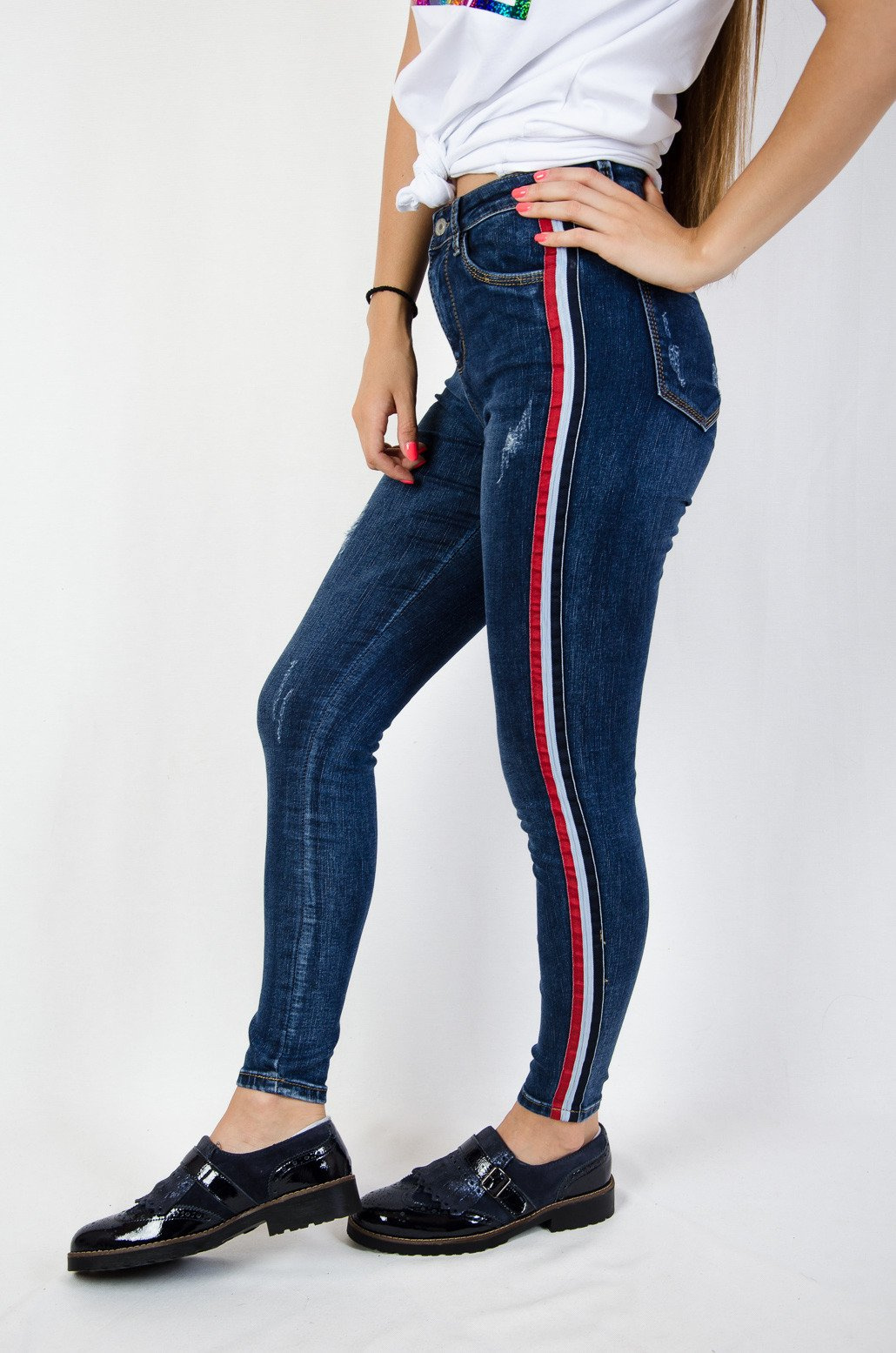 Spodnie jeansowe z lampasami w trzech kolorach: