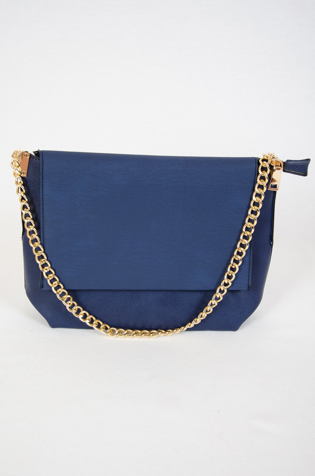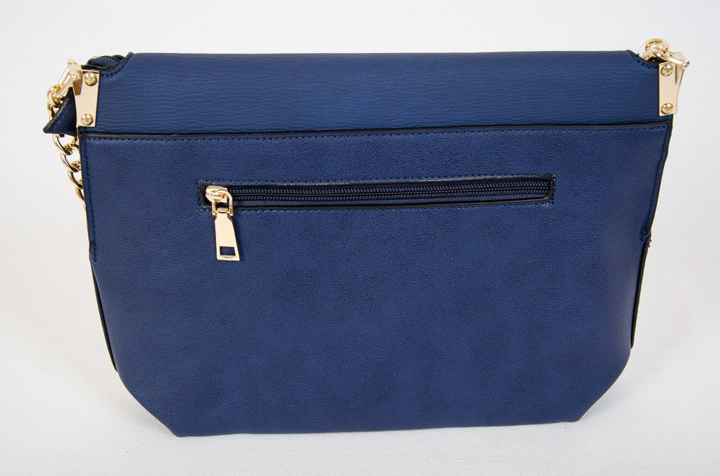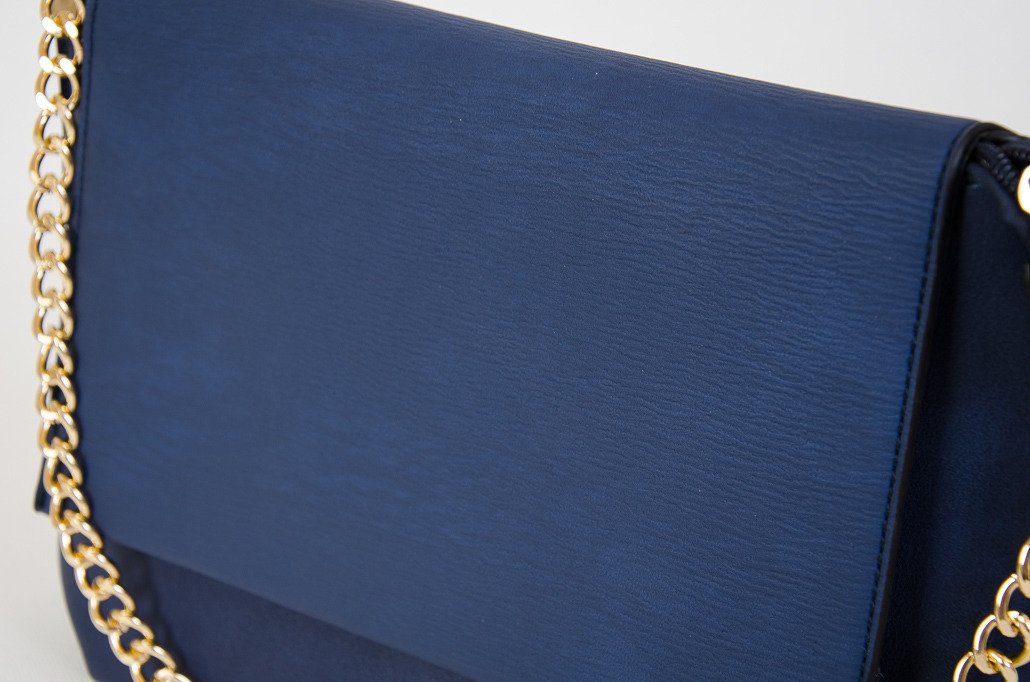 Granatowa kopertowa torebka na złotym łańcuszku