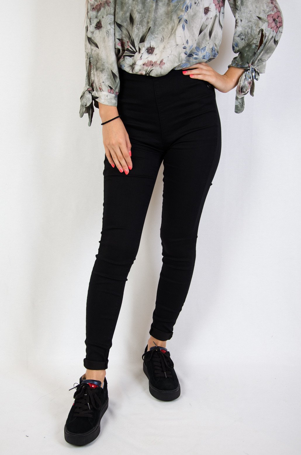 Czarne spodnie z gumką w pasie i wiązaniem na biodrach
