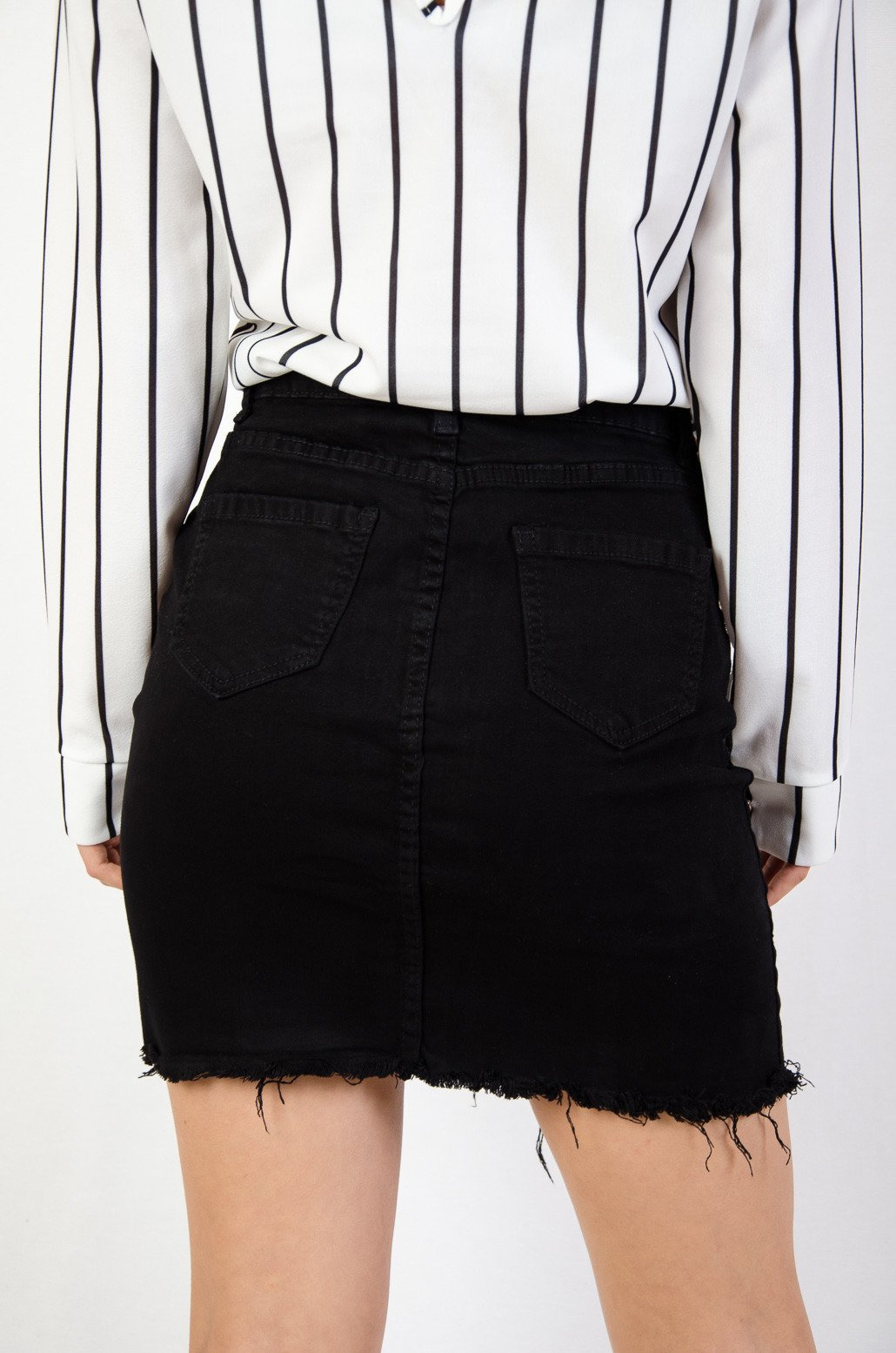 Czarna spódniczka jeansowa zapinana na guziki oraz kieszeniami z przodu i z tyłu.