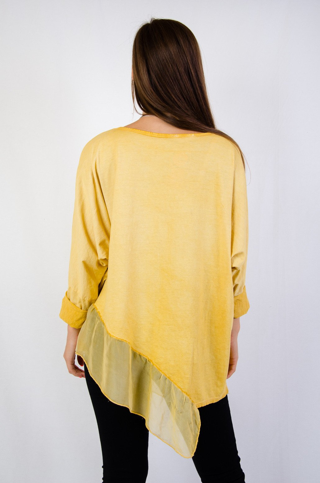 Żółta asymetryczna bluzka z tiulowym dołem oraz wisiorkiem w komplecie