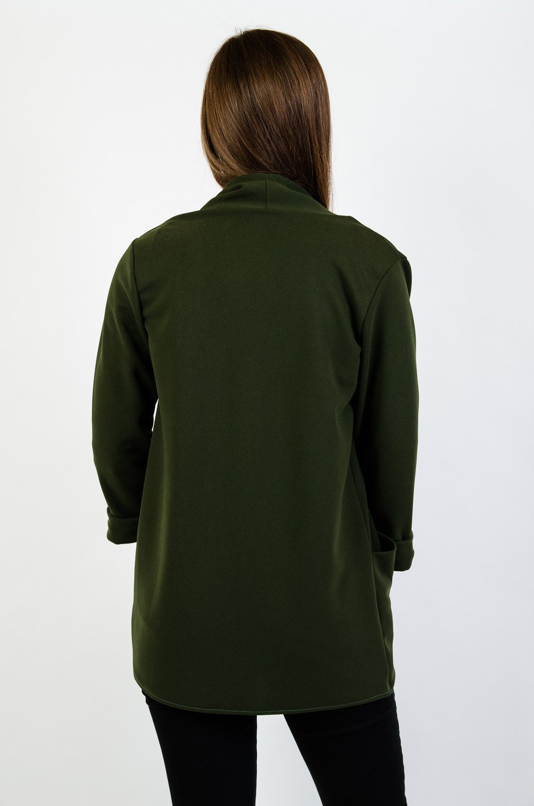 Zielona narzuta-marynarka z zakładką, podwinięte rękawy