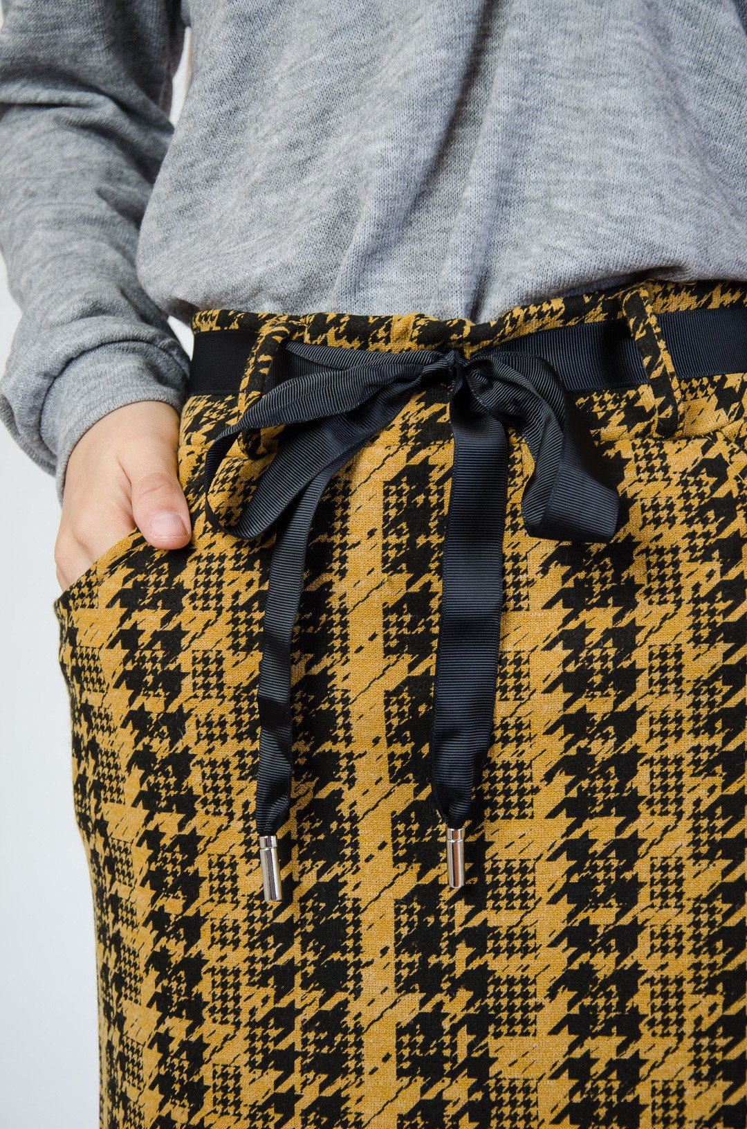 Musztardowa spódnica w pepitkę wiązana wstążką w pasie