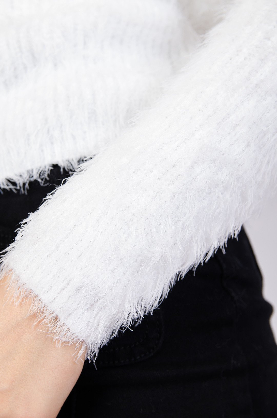 Biały puszysty sweter dzianinowy