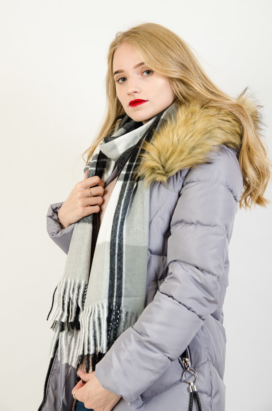 Czarny szalik w kratę