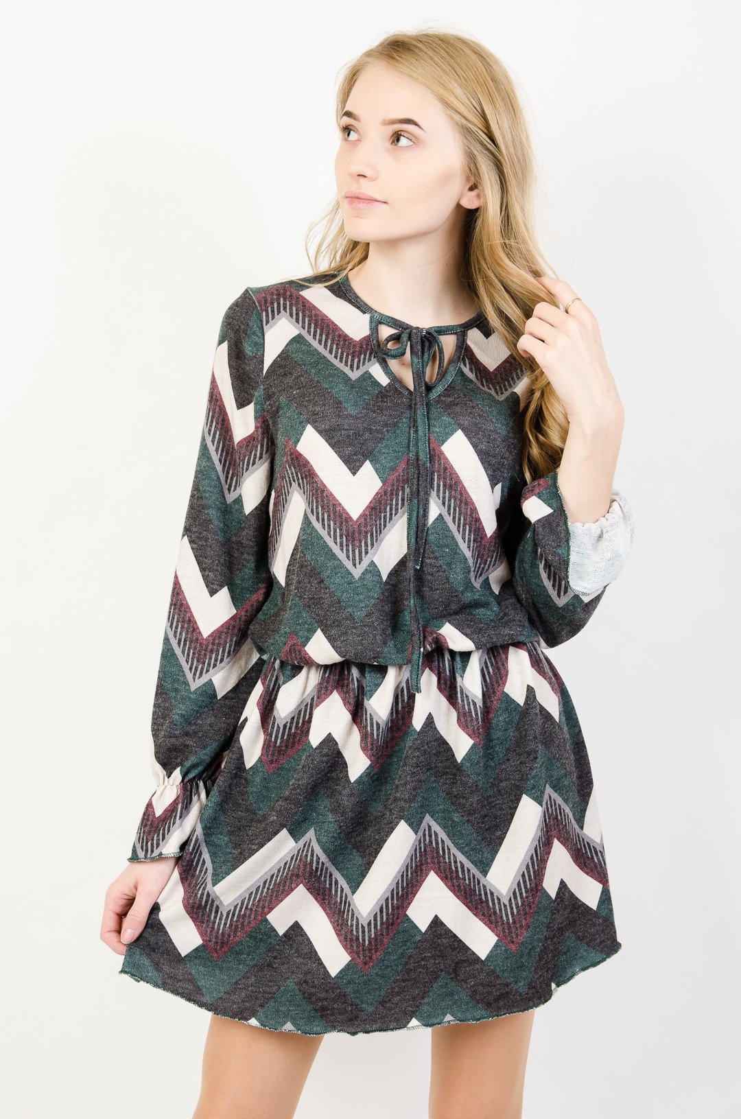 Dzianinowa sukienka w geometryczne wzory