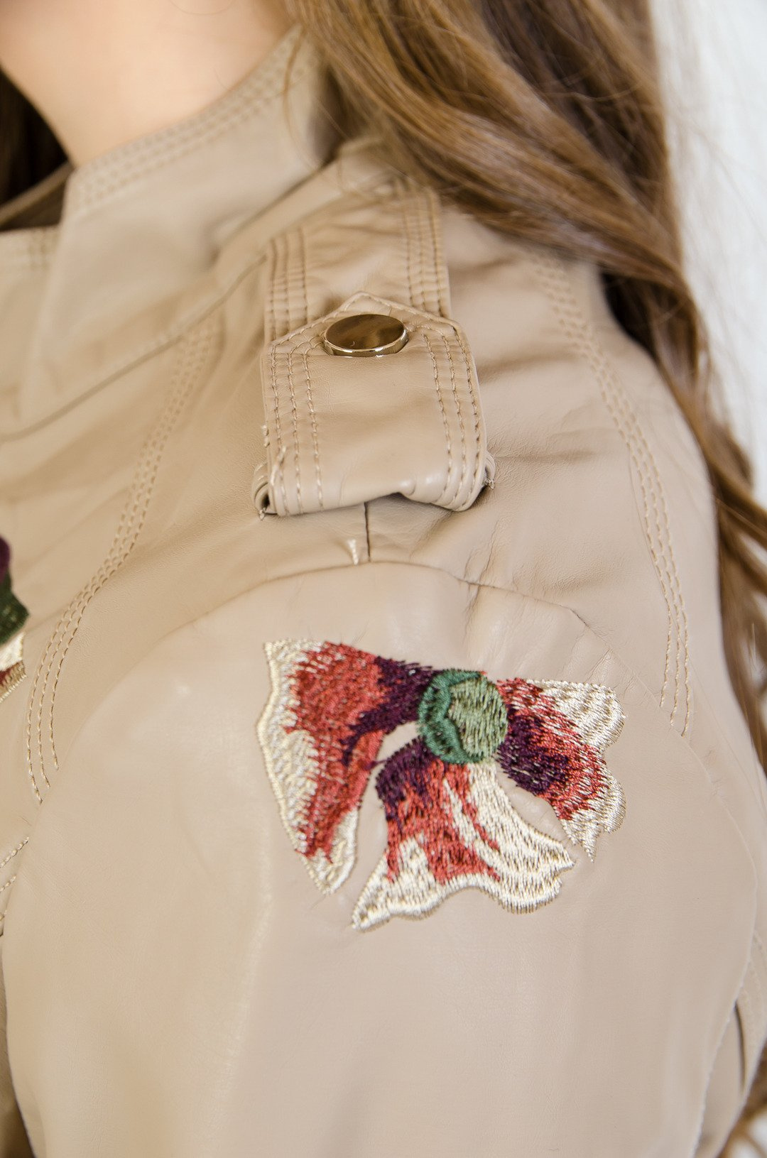 Beżowa ramoneska z wyszywanym kwiatem.