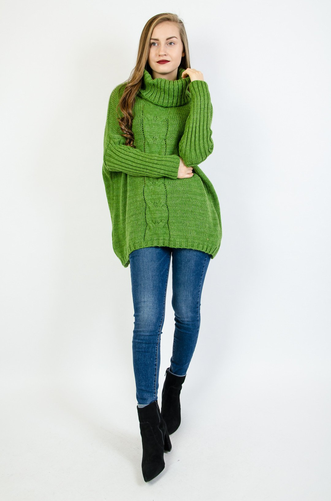 Zielony asymetryczny sweter typu nietoperz z golfem