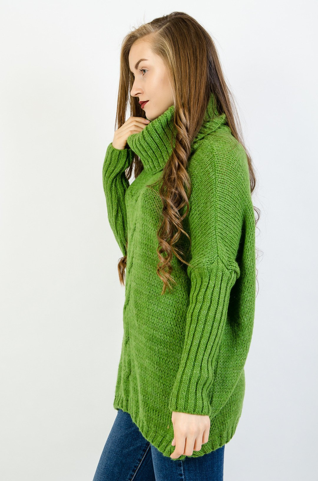 Zielony asymetryczny sweter typu nietoperz z golfem