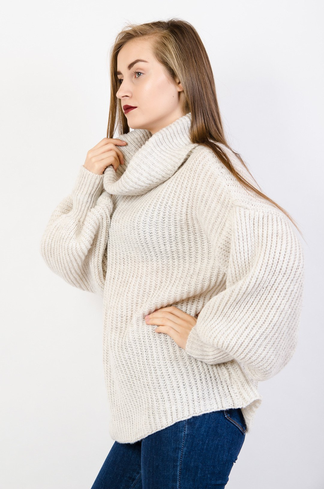 Beżowy golf z bufiastymi rękawami