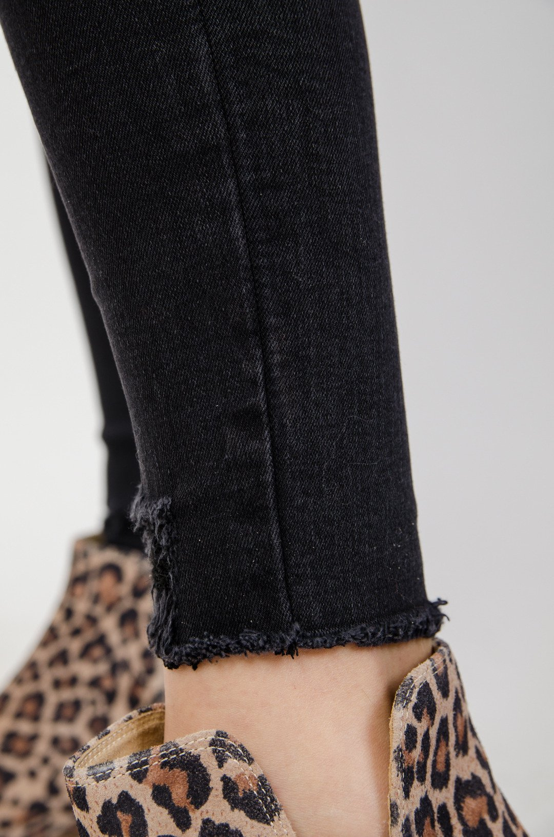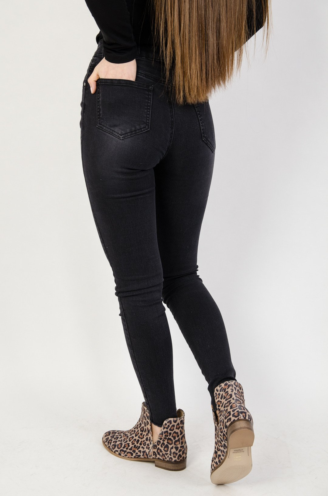 Ciemne Spodnie jeansowe Skinny z przetarciami