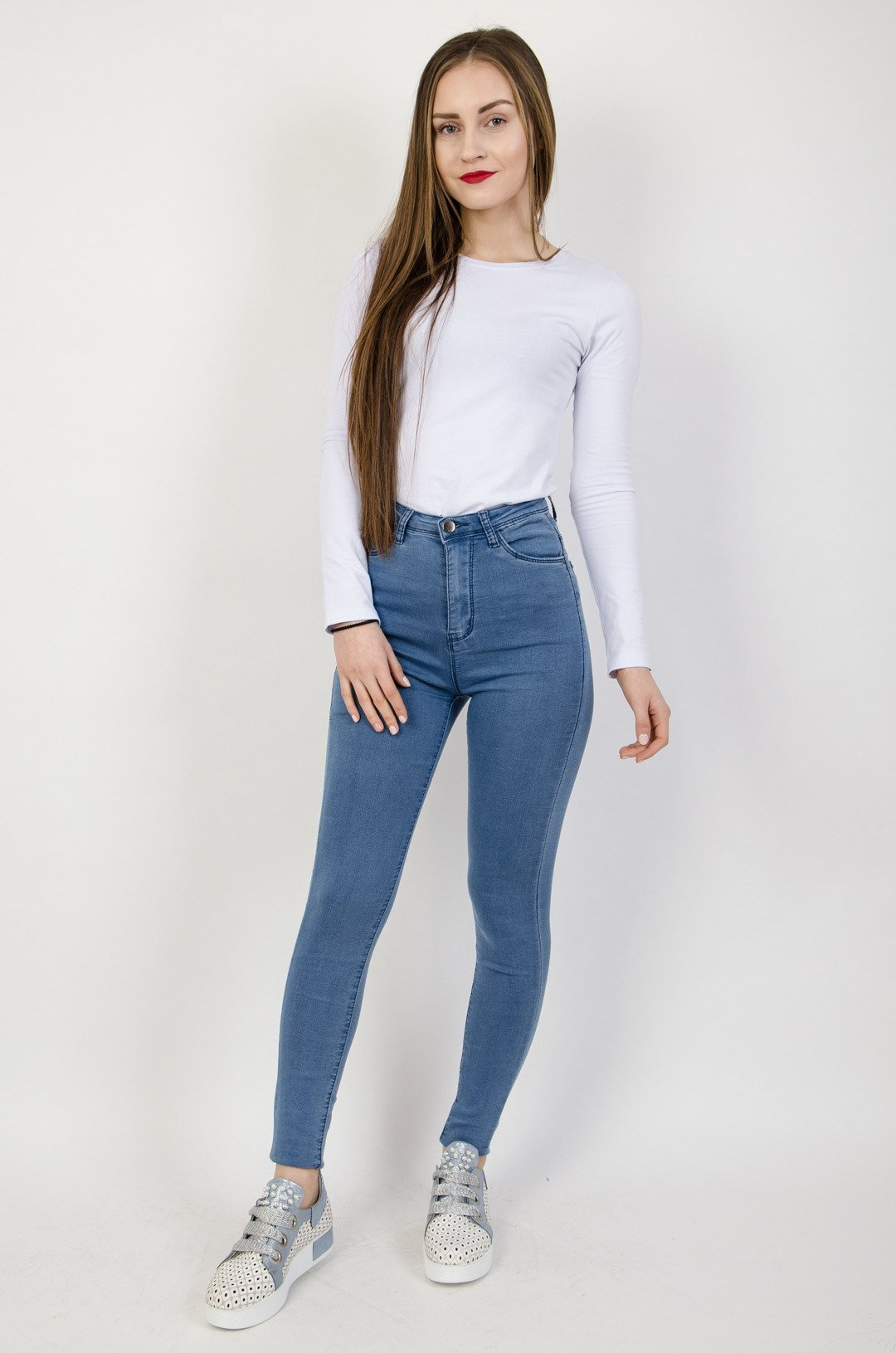 Jasno niebieskie spodnie - jegginsy z wysokim stanem